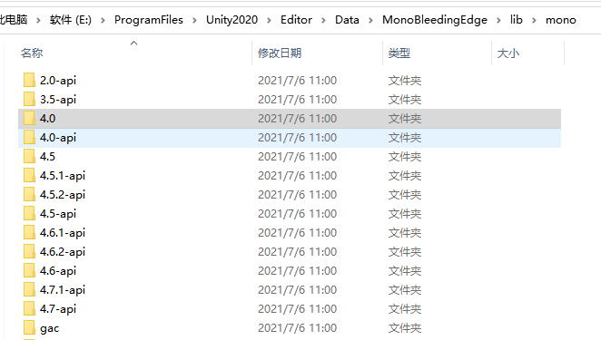 于是跟着路径找到 Unity 的安装目录:Editor\Data\MonoBleedingEdge\lib\mono
