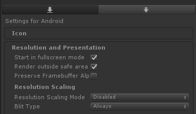 这旧版本的刘海更大了!所以还是感觉新版如果把刘海也渲染进去,表现效果会更好一点,稍微查了一下,就得知刘海没有被渲染的原因是因为出包工程 Unity2018.4.36 这个版本没勾 『Render outside safe area』选项导致的,于是勾上重新出包。