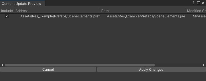 在资源发生变更后,可以通过菜单的 Tools->Check for Content Updates 将其自动设置到一个名为 ContentUpdate 的新分组中: