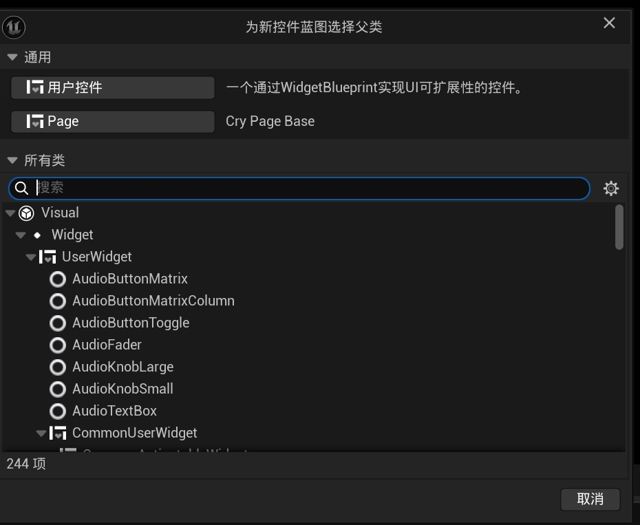 - 直接将类型添加到 UUMGEditorProjectSettings->FavoriteWidgetParentClasses (这种方式会出现在创建用户控件蓝图的界面中)